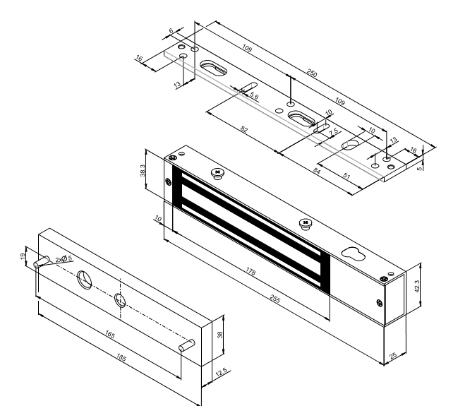 Rozměry (d x š x h) mm elektromagnet: 255x 42,3 x25