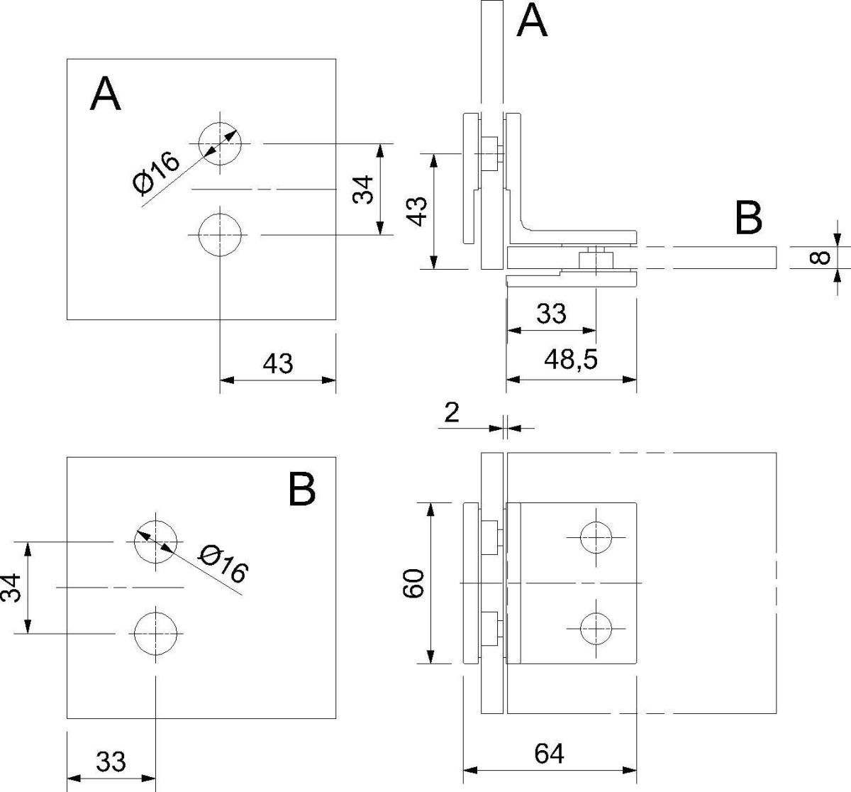 Elena - rohový úchyt, sklo/sklo 90°, chrom leštěný