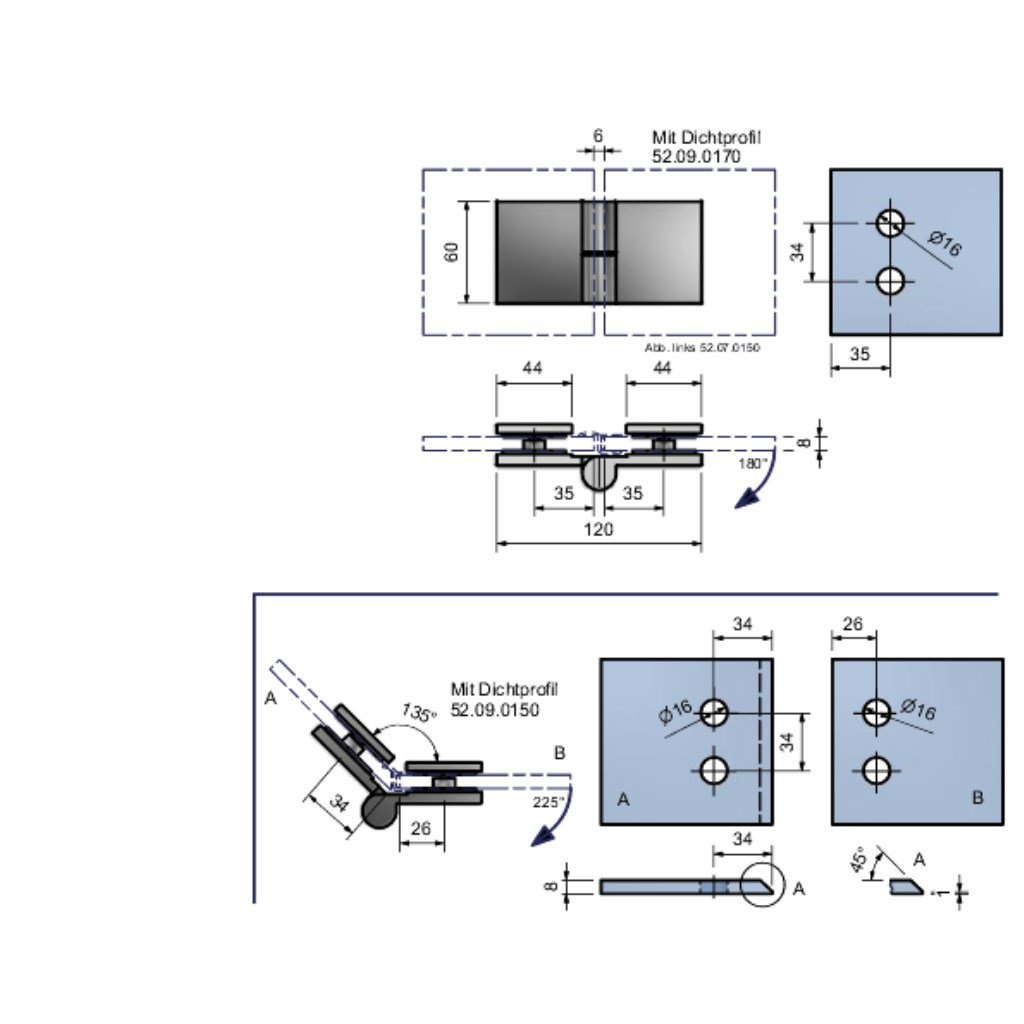 Pant pro sprchové dveře ELENA -sklo/sklo, 180°/135°