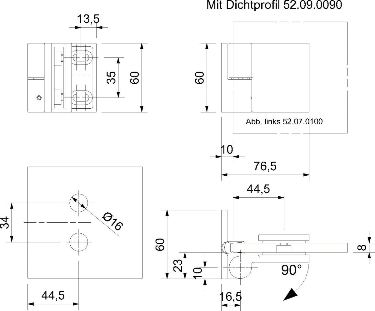Pant pro sprchové dveře ELENA -sklo/sklo, 180°/135°, černá