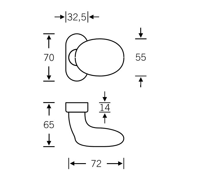 Rozeta: 70 x 32,5 x 14 mm