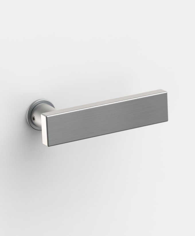 Tvar kliky připomíná úzké dveře. Je to model pro milovníky čistého designu. Dostupné jsou varianty jsou v hliníku a nerezi.