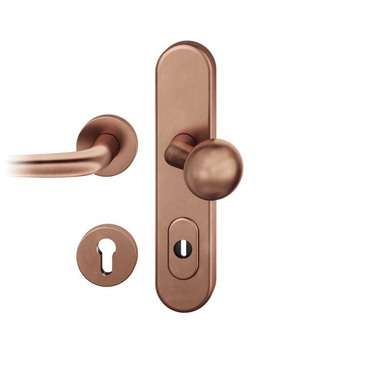 V ceně sady je kompletní vybavení: vnější štít s koulí nebo klikou, spojovací šrouby, čtyřhran + interiérová klika model FSB 1107. U bronzového kování je standardně klika FSB 1023.