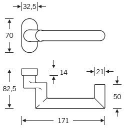 Rozteč otvoru pro šrouby 50 mm. Klika se dodává včetně nýtovacích matic a metrických šroubků.