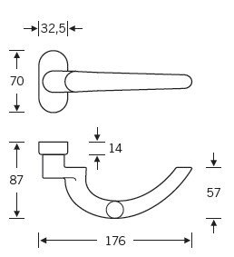 Rozteč otvoru pro šrouby 50 mm. Klika se dodává včetně nýtovacích matic a metrických šroubků.