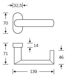 Rozeta: 70 x 32,5 x 14 mm
