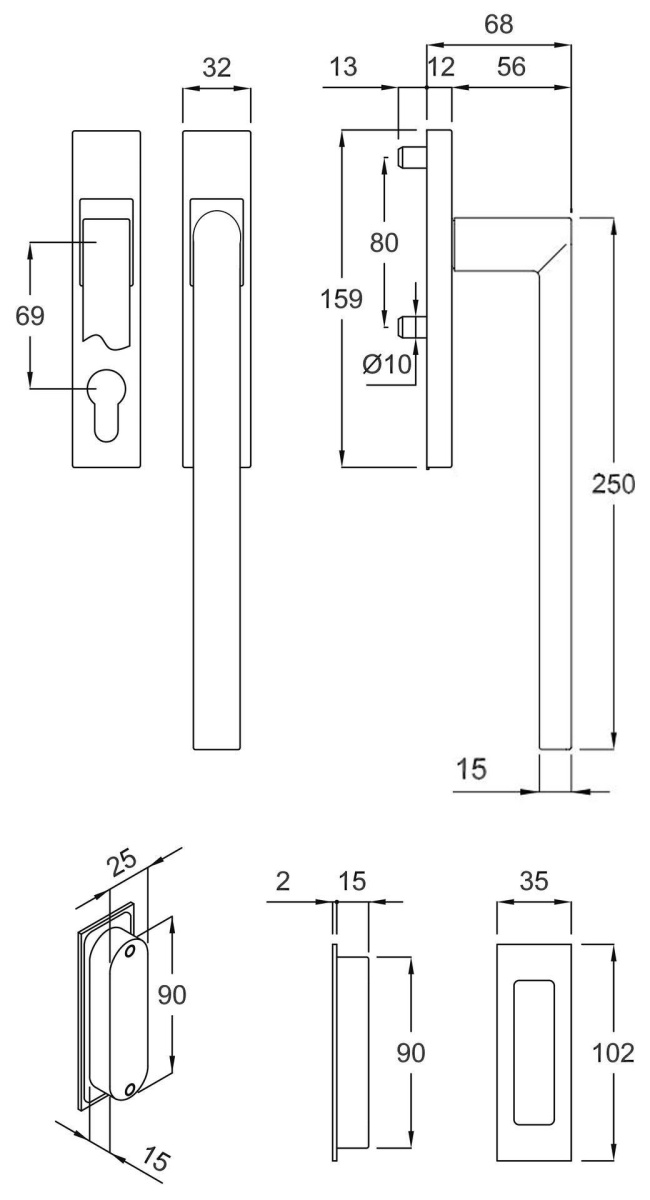 Klika s úzkou rozetou Südmetall Korsika II-R, paniková