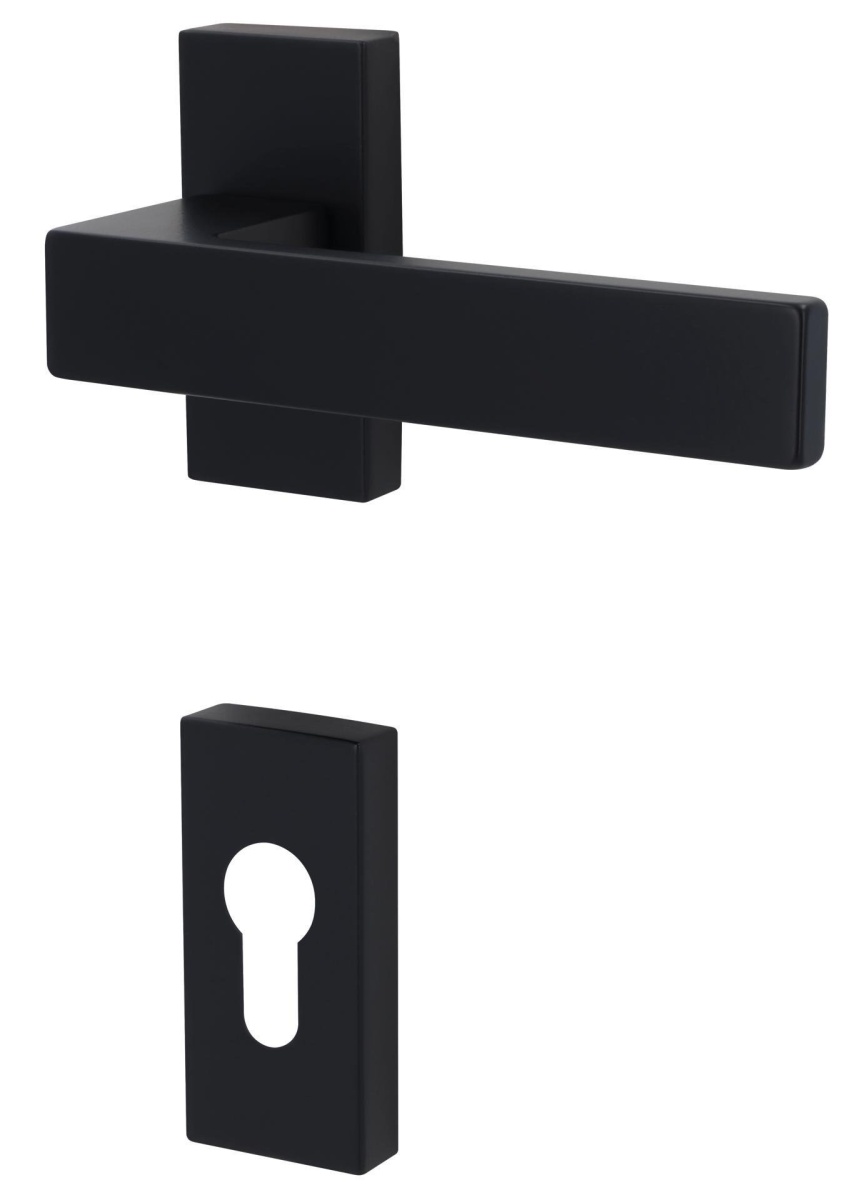 Klika s úzkou hranatou rozetou Südmetall Matteo-R, TopSpeed, černá Pravé provedení