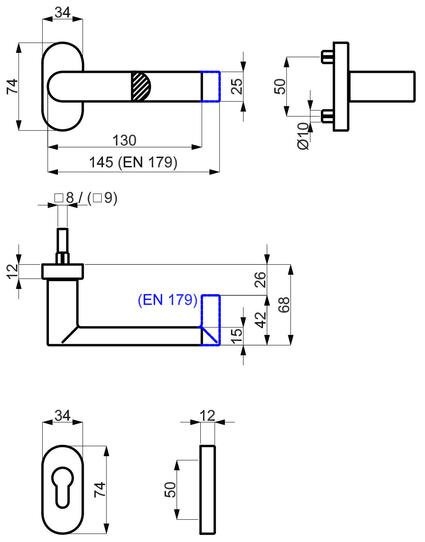 Vhodné pro použití na panikové dveře dle EN 179 + požární dveře dle DIN 18273