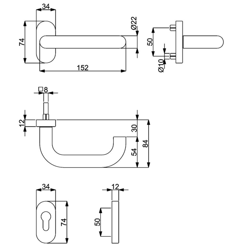Rozměry kliky: průměr 22 mm, délka 140 mm