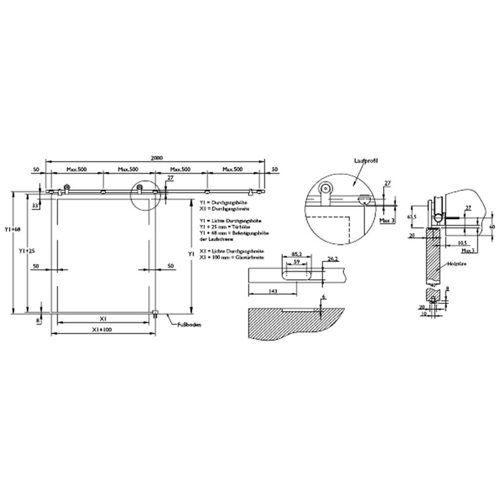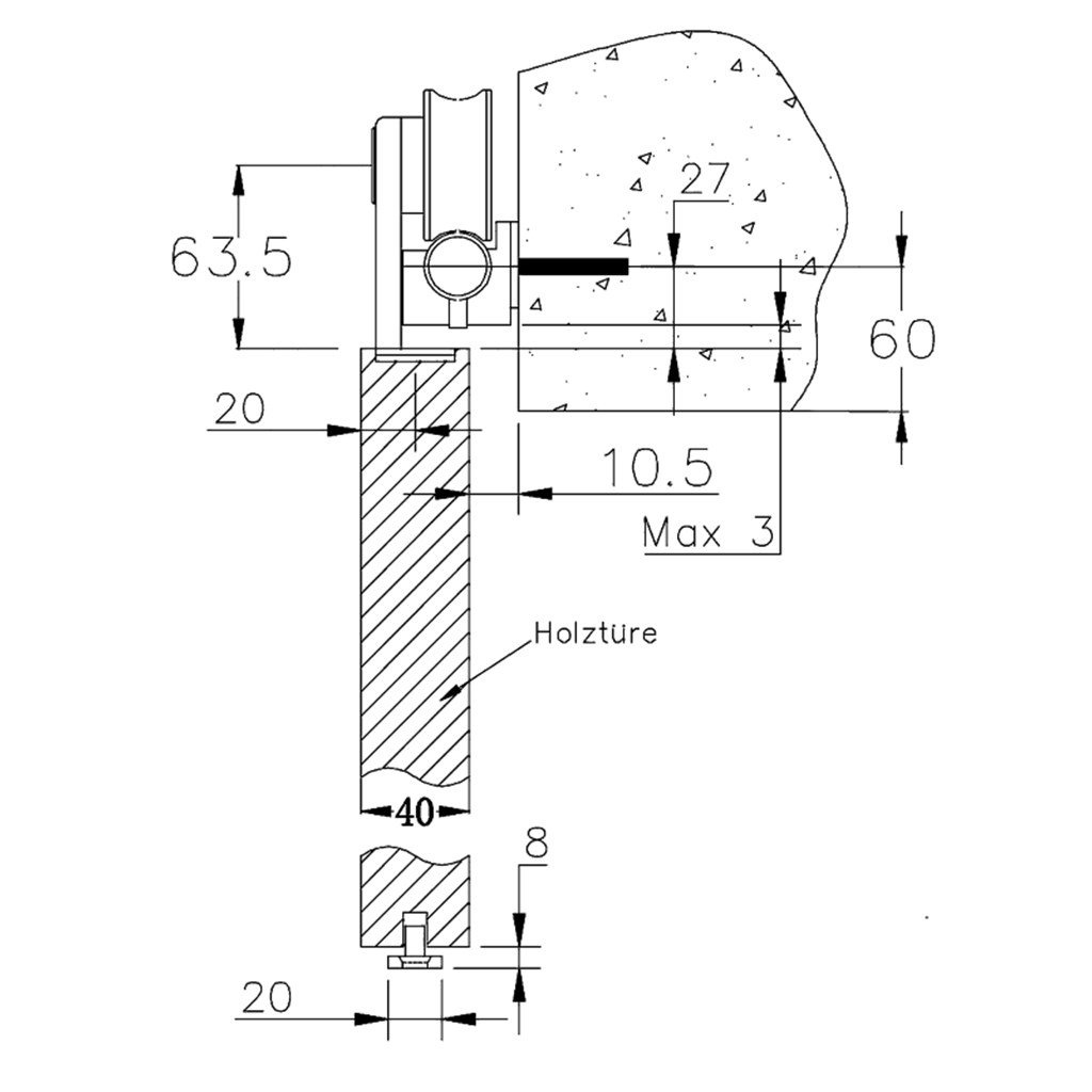 Vozík  pro posuvné dveře. Vhodné pro použití s tyčí průměrem 25 mm.