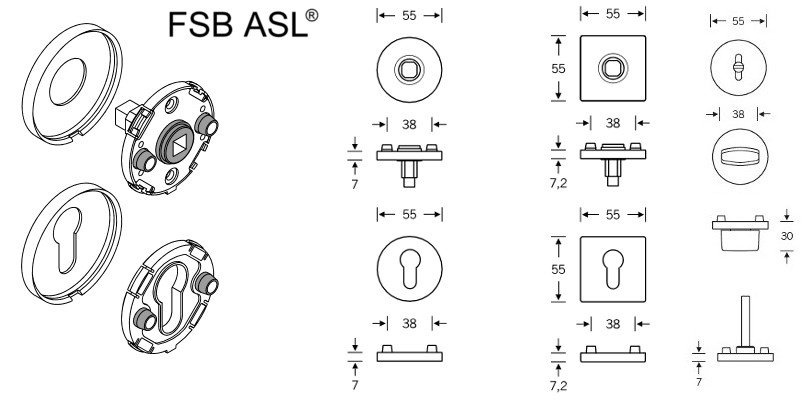 Kování FSB 12 1023 ASL, klika/klika, obyčejný klíč, nerez, výprodej