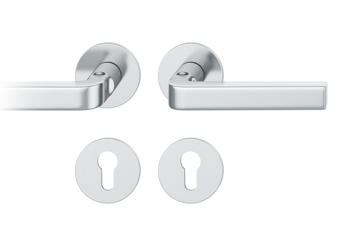 Dveřní klika FSB s plochou rozetou a možností integrovaného zamykání.
