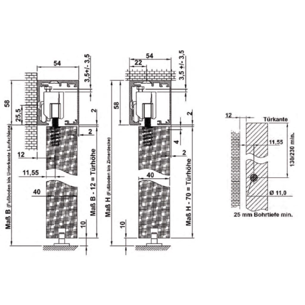 Kompletní set pro posuvné dřevěné dveře instalované před stěnu na nebo na strop v liště