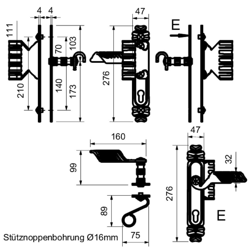 Klika/madlo, levá