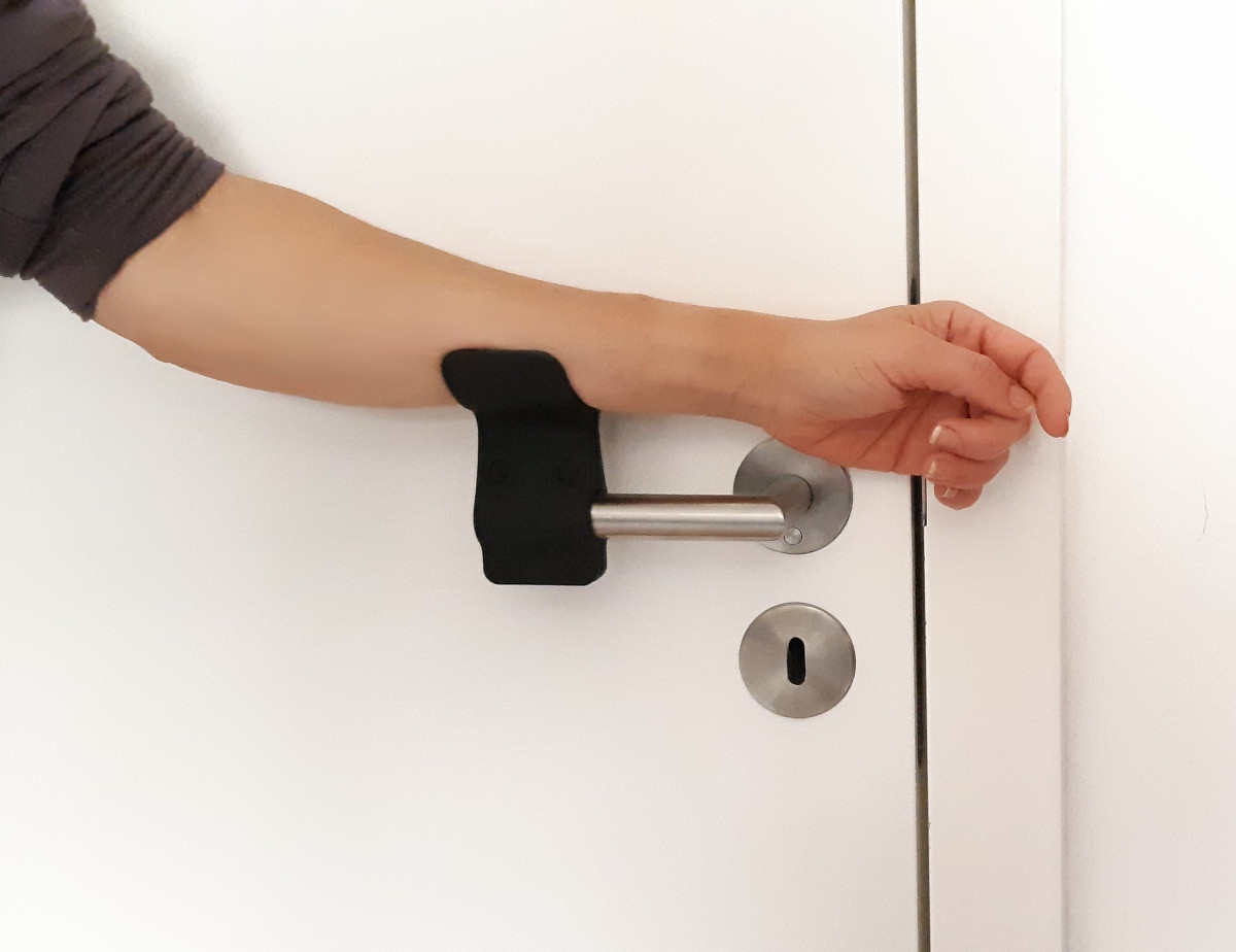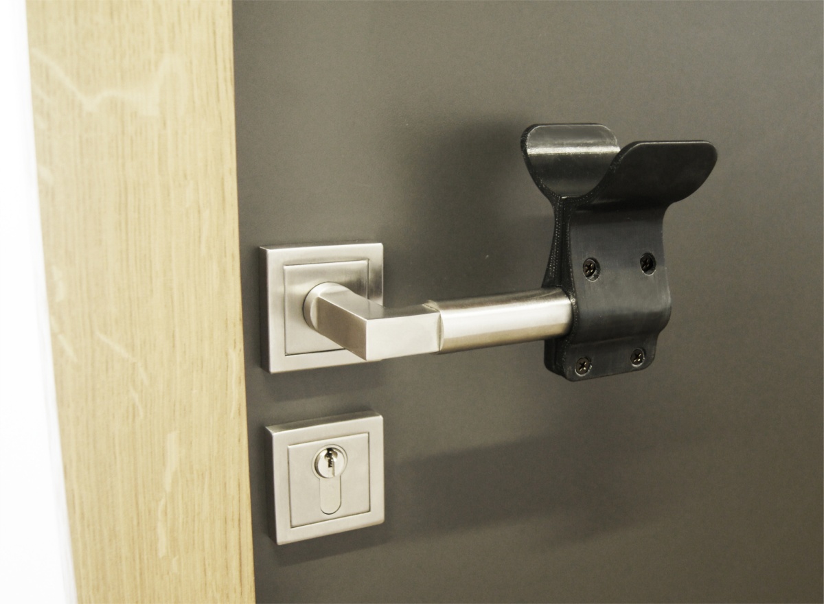 Nástavec je vhodný pro použití do veřejných prostor, kde existují vyšší nároky na hygienu dveří. Otevírání pomocí lokte výrazně snižuje riziko přenosu virů a bakterií na ploše dveřních klik.