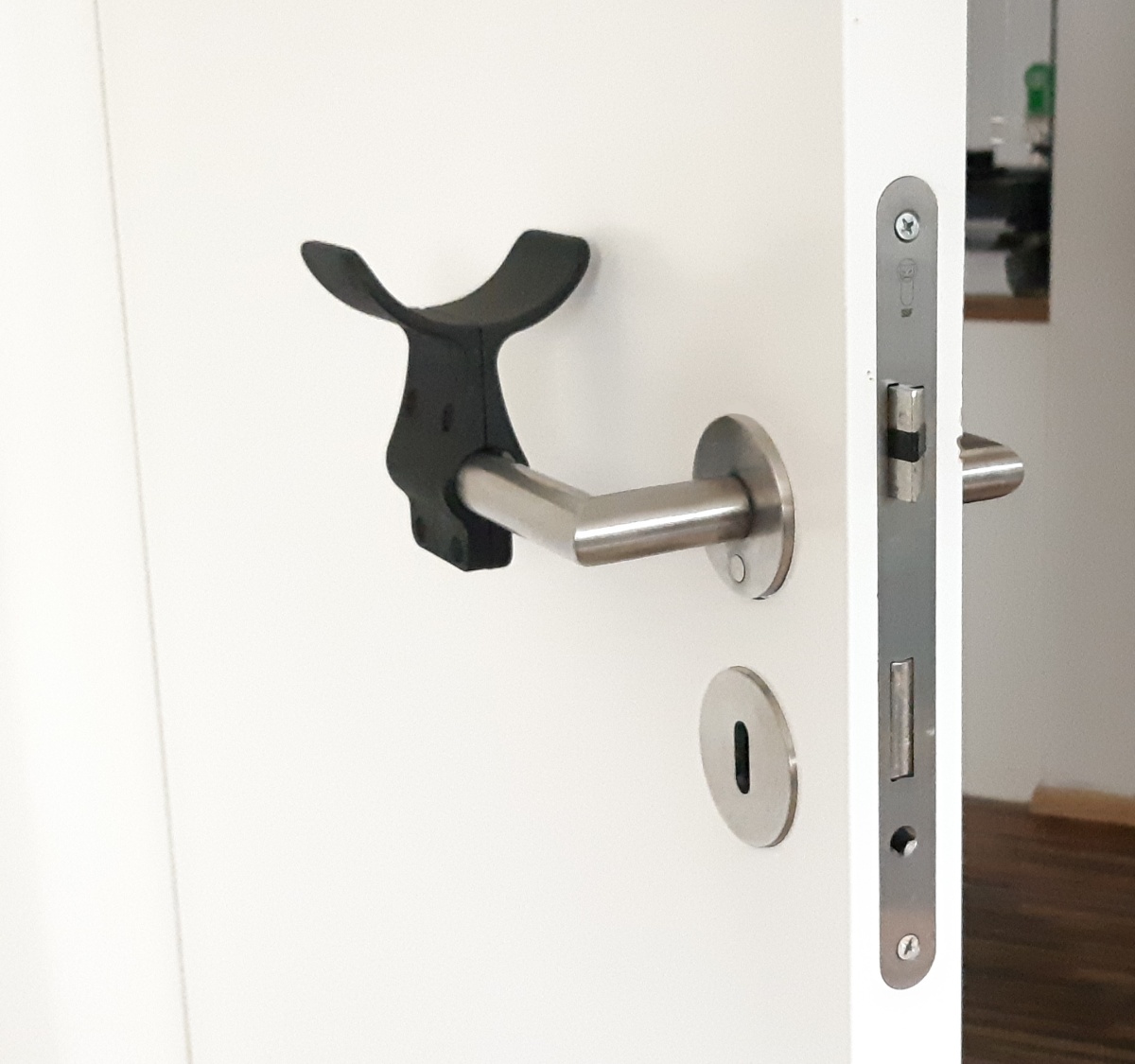Nástavec je vhodný pro použití do veřejných prostor, kde existují vyšší nároky na hygienu dveří. Otevírání pomocí lokte výrazně snižuje riziko přenosu virů a bakterií na ploše dveřních klik.