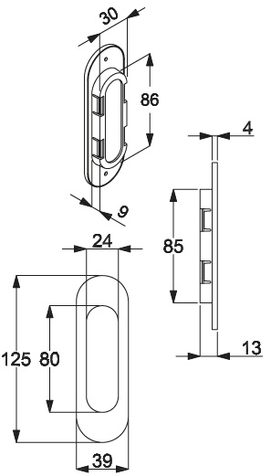 Mušle pro posuvné dveře Südmetall Nr.20, hranatá