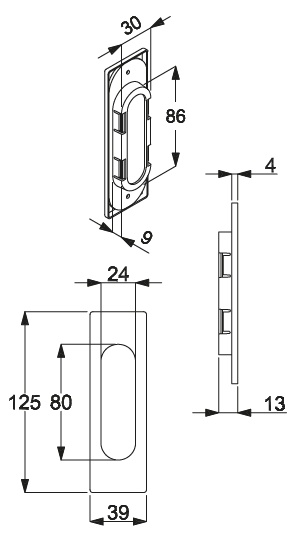 Mušle pro posuvné dveře Südmetall Nr.20, hranatá