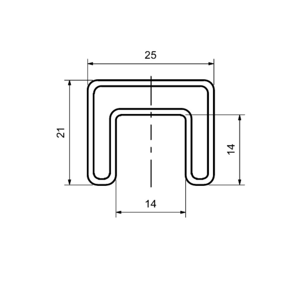 Rozměr 25x21x1.5 mm, vnitřní drážka 14x14 mm