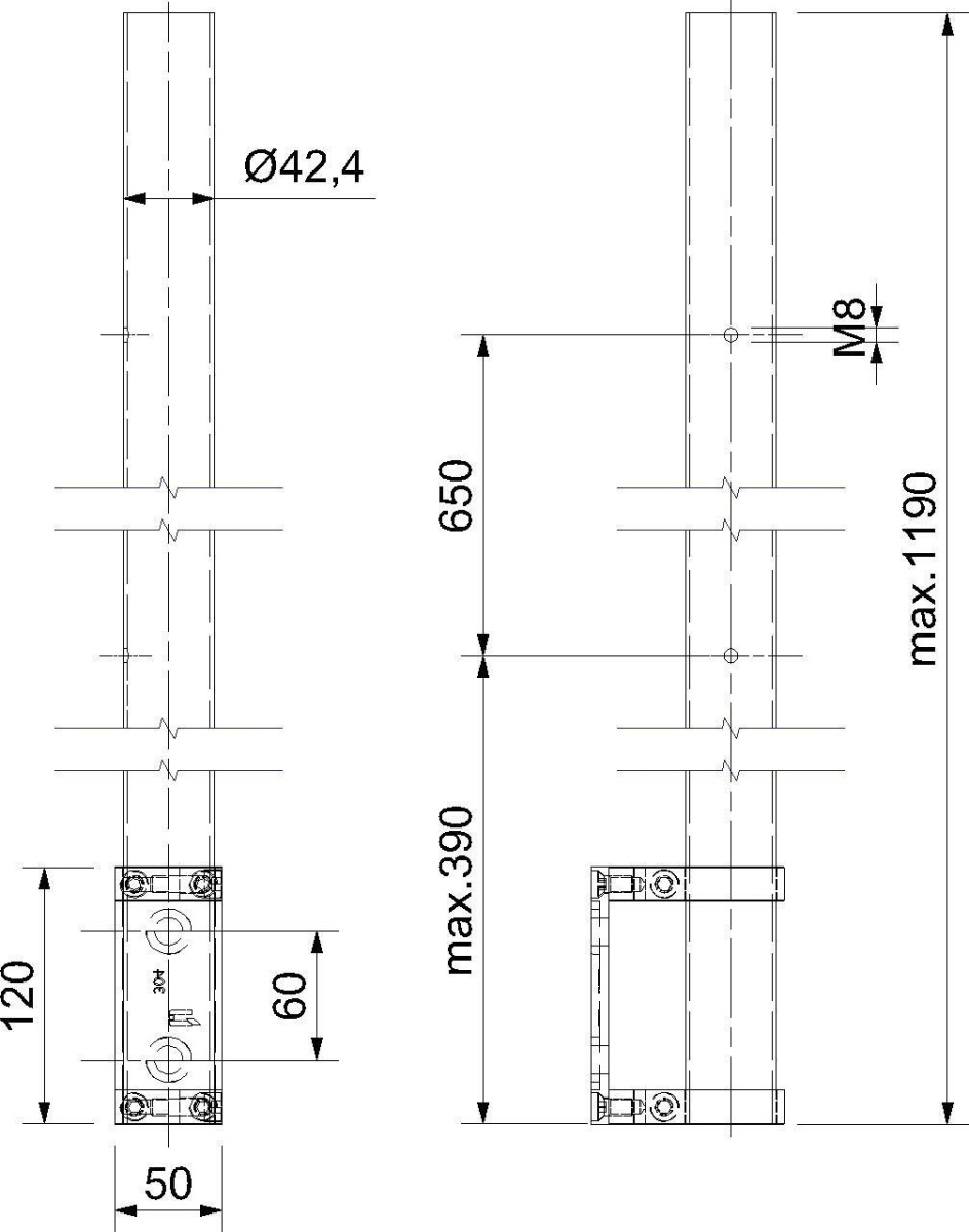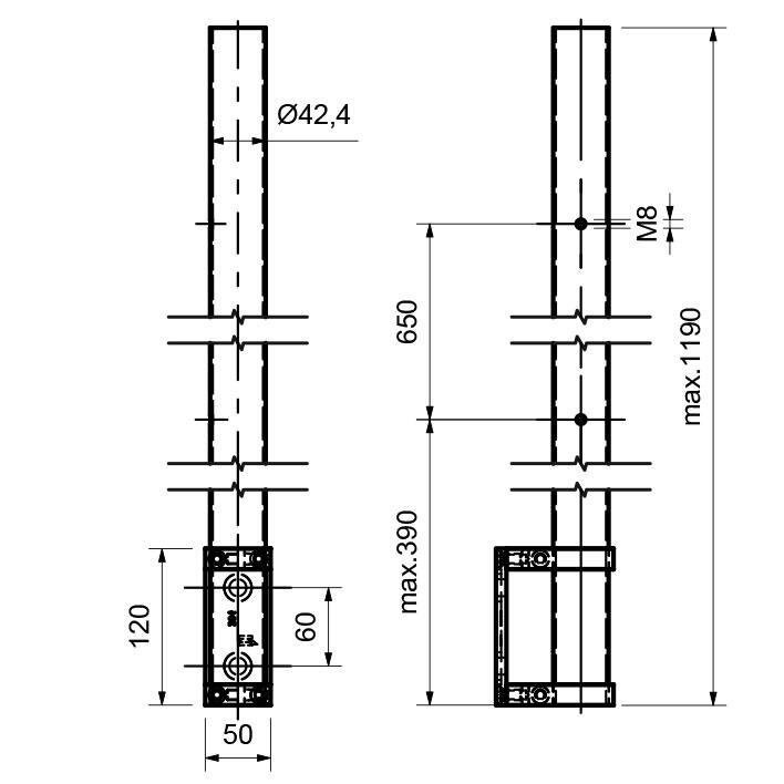 Nerezový sloupek koncový odsazený s přípravou pro montáž úchytů na sklo 2xM8 závit