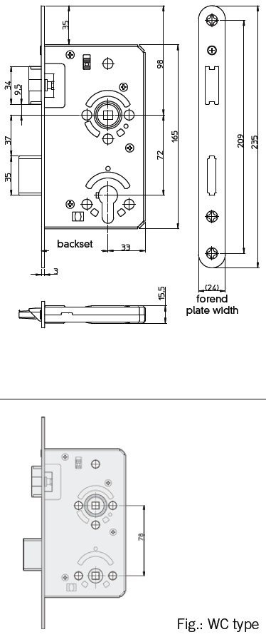 Objektový dveřní zámek SSF Serie 50, 3.třída WC uzamykání, čtyřhran 8 mm, 55 mm, 20 mm