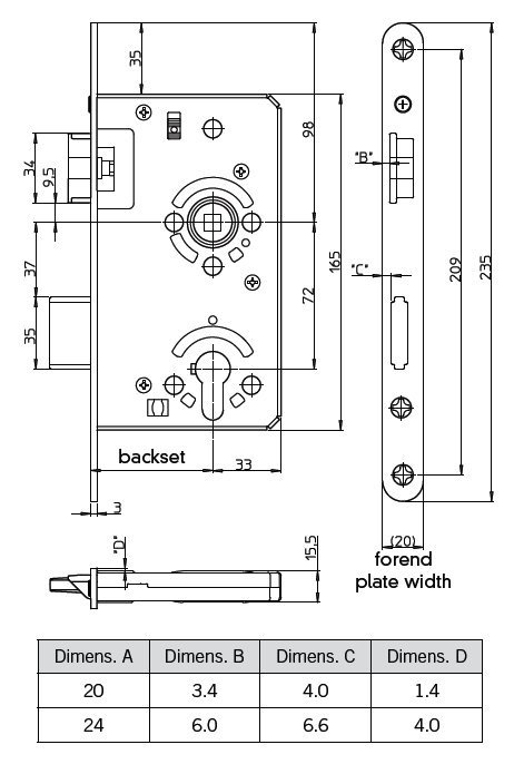Zámek pro plné těžké objektové dveře umístěné v extrémně zatížených prostorech, střelka a závora vyosené, provedení pravé nebo levé