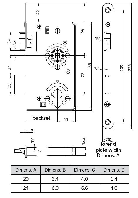 Zámek pro plné těžké objektové dveře umístěné v extrémně zatížených prostorech, střelka a závora vyosené, provedení pravé nebo levé