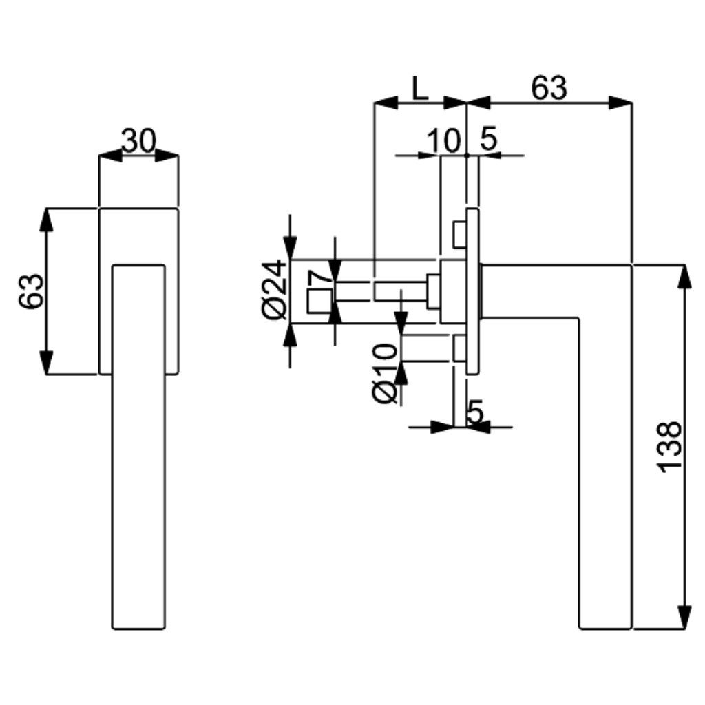 Klika s úzkou hranatou rozetou Südmetall Galina II-R, TopSpeed Linear