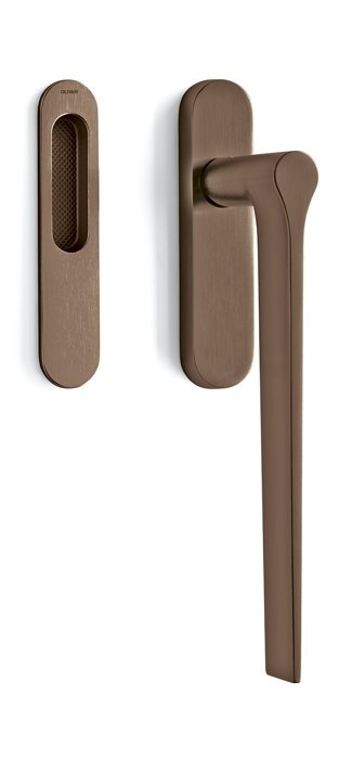 Klika pro HS portály Olivari Lama Superfinish bronz satin, Oboustranná klika s otvorem pro vložku