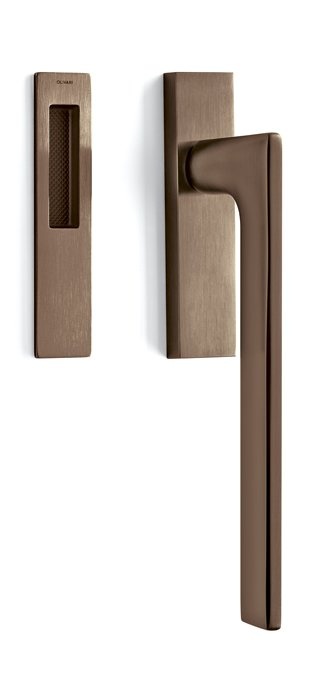 Klika pro HS portály Olivari Lotus Q Superfinish bronz satin, Oboustranná klika s otvorem pro vložku