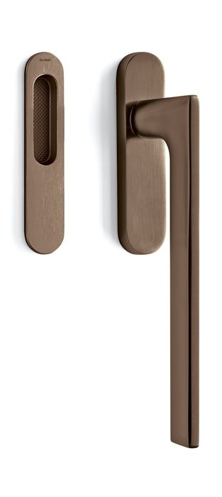 Klika pro HS portály Olivari Lotus Superfinish bronz satin, Oboustranná klika s otvorem pro vložku