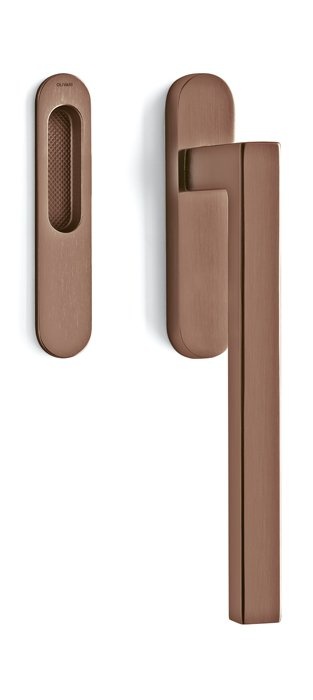 Klika pro HS portály Olivari Planet Superfinish měď satin, Oboustranná klika s otvorem pro vložku