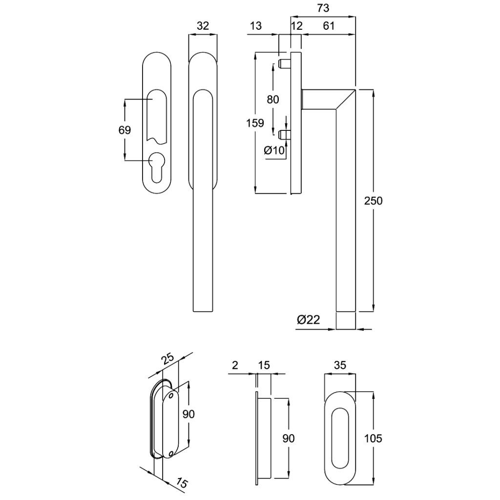 Oboustranná klika s otvorem pro vložku