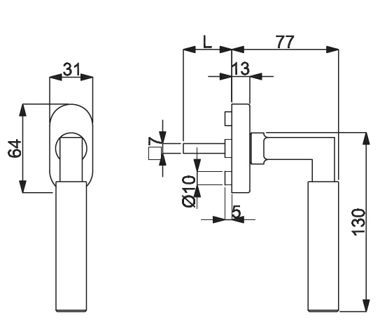Okenní klika Südmetall Alaska Nerez kartáčovaná, 7 x 7 x 35 mm