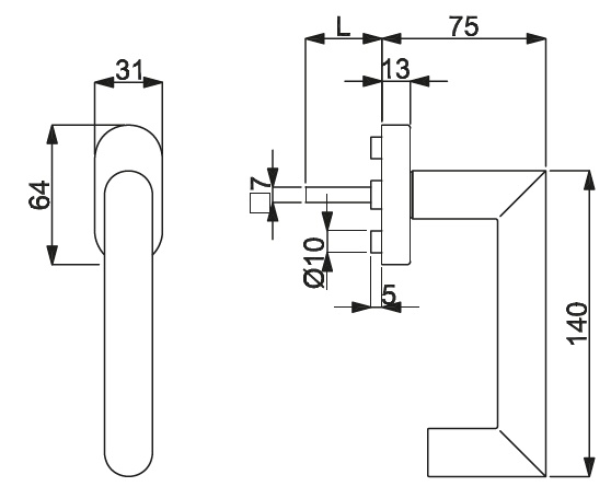 Okenní klika Südmetall Hanna, B03 7 x 7 x 35 mm