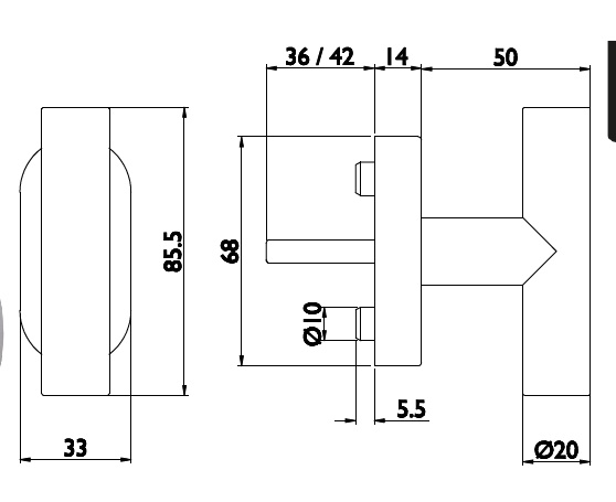 Klika s úzkou rozetou Südmetall Hanna-R, TopSpeed, požární