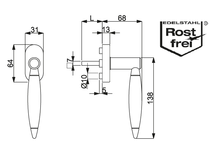 Okenní klika Südmetall Lignes 7 x 7 x 40 mm