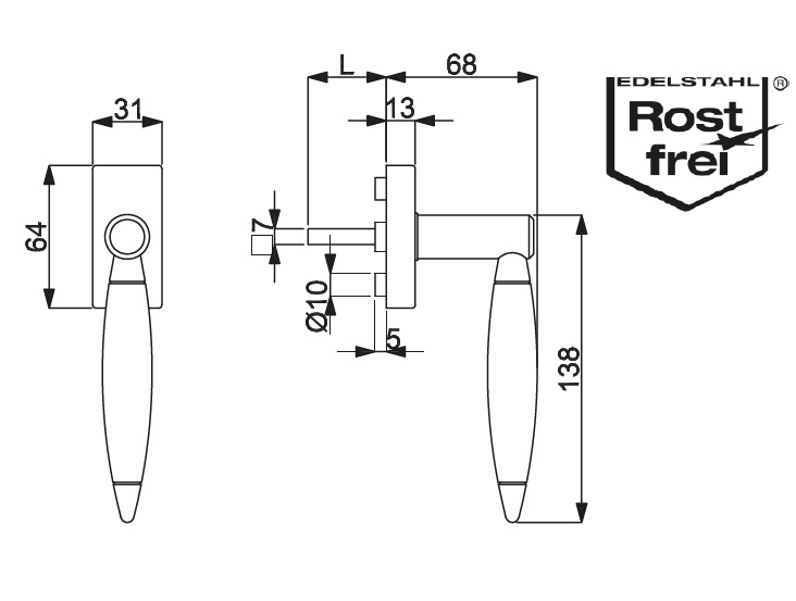 Okenní klika Südmetall Lignes Square 7 x 7 x 35 mm