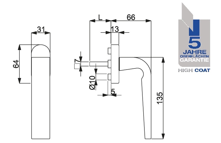 Okenní klika Südmetall Paris 7 x 7 x 35 mm