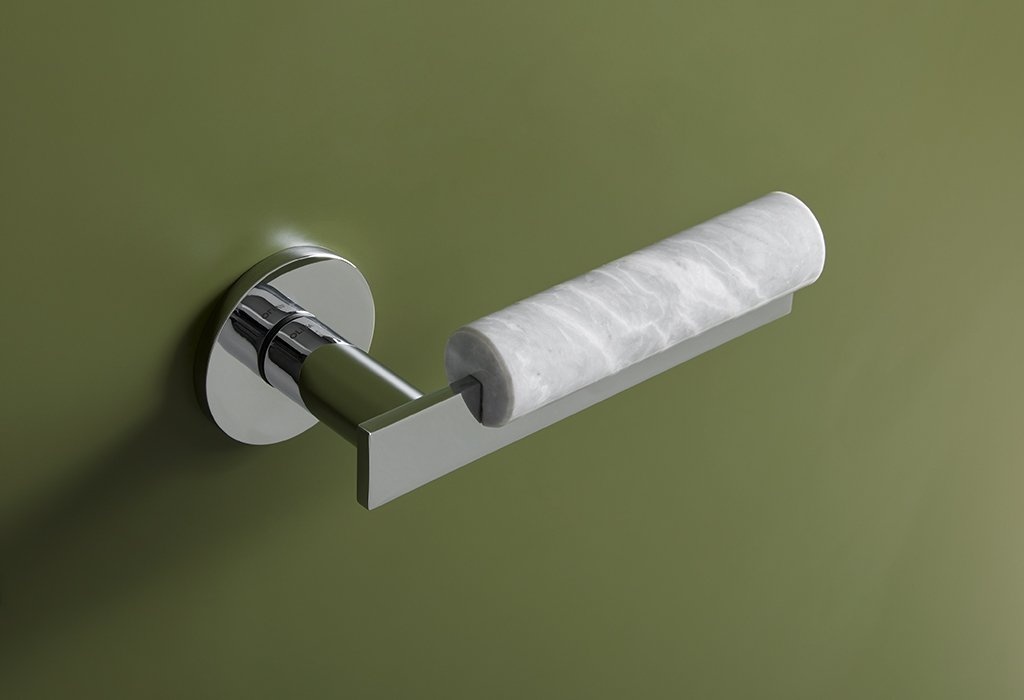 "Inspirovali jsme se Bauhausem," říkají Nina Ruthe a David Antonin z designového studia Niruk. Redesign kliky z roku 2023 zahrnuje použití mramoru.