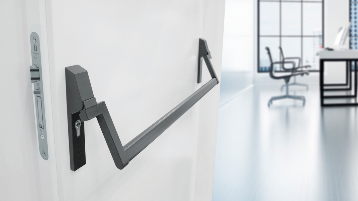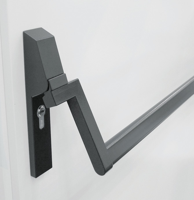 Tlačná paniková hrazda vhodná pro kombinaci se zadlabacími panikovými zámky Südmetall a SSF.