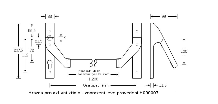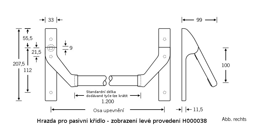 Hrazda je dodávána s délkou trubky 1200 mm. Trubku lze zkrátit dle potřeby.