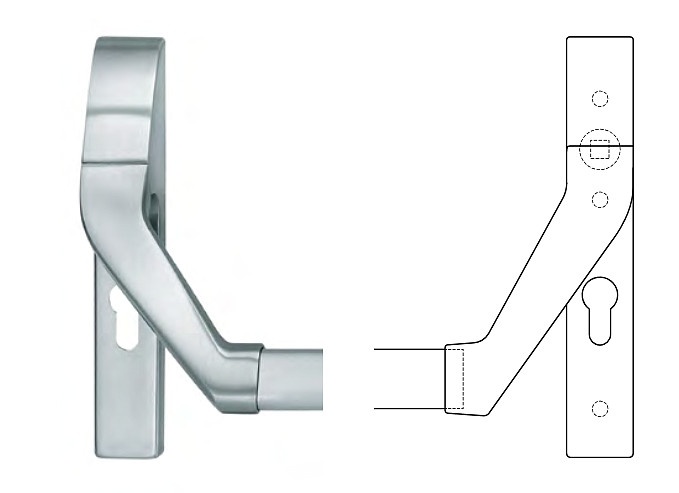Tlačná zadlabací paniková hrazda vhodná pro kombinaci se zadlabacími panikovými zámky SSF.