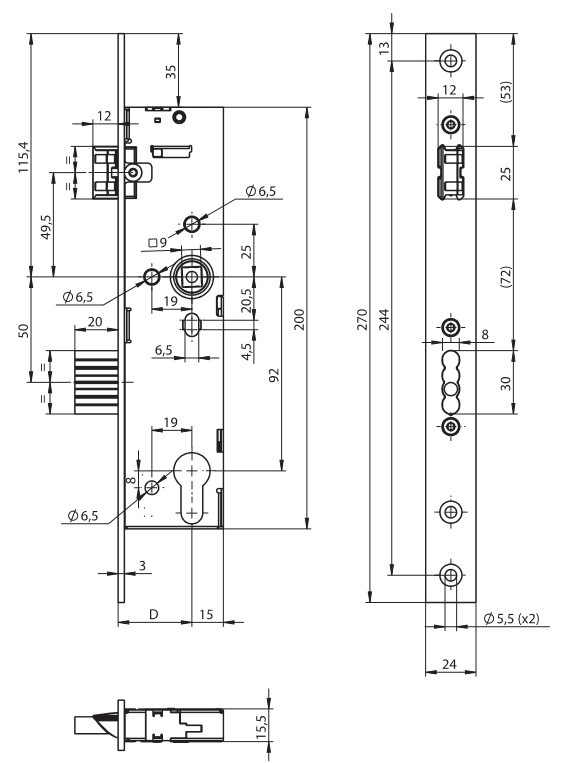 Mechanický zadlabací panikový zámek ovládání cylindrickou vložkou