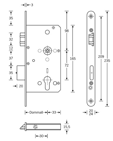Čelo zámku nerez, délka 235, šířka: 20, 24 mm