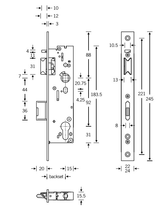Panikový zámek úzký samozamykací, SSF Serie 05 APE, klika/koule