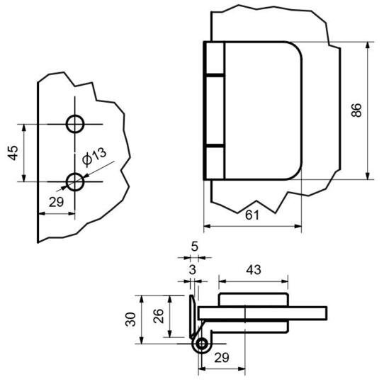Jednoduchý závěs pro instalaci skleněných dveří do falcu