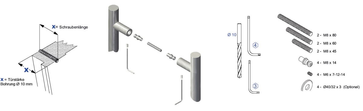 Dveřní madlo Südmetall San Michaele, nerez, 30 mm, vyosené