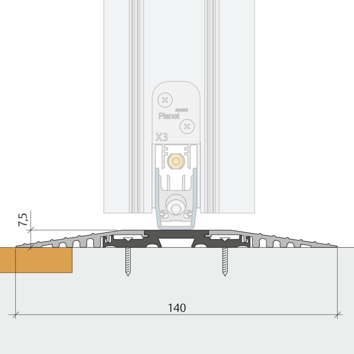 Speciální naklikávací práh Planet F140 pro kombinaci s padací lištou X3